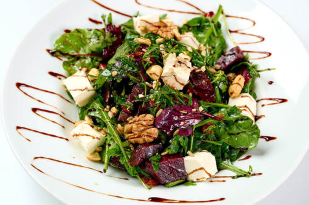 Мікс бейбі салату з вяленими томатами буряком та сиром фетою.250 г